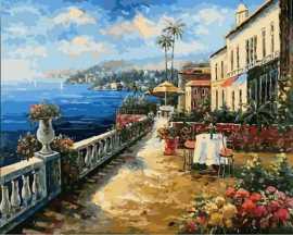 Набор для рисования картины по номерам Кафе с видом на море, арт. VP863, 40х50см. ***НАЛИЧИЕ УТОЧНЯЙТЕ***