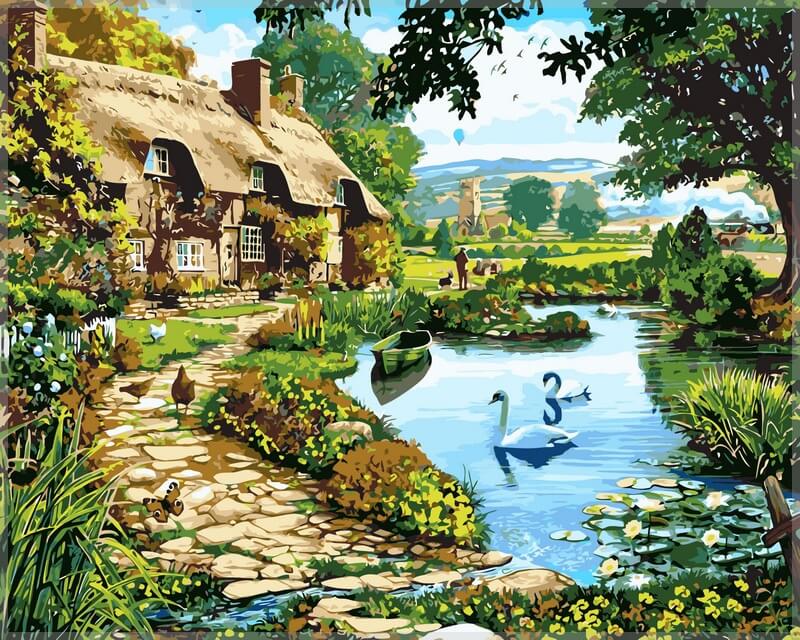 Набор для рисования картины по номерам Коттедж у озера, арт. VP144, 40х50см. ***НАЛИЧИЕ УТОЧНЯЙТЕ***