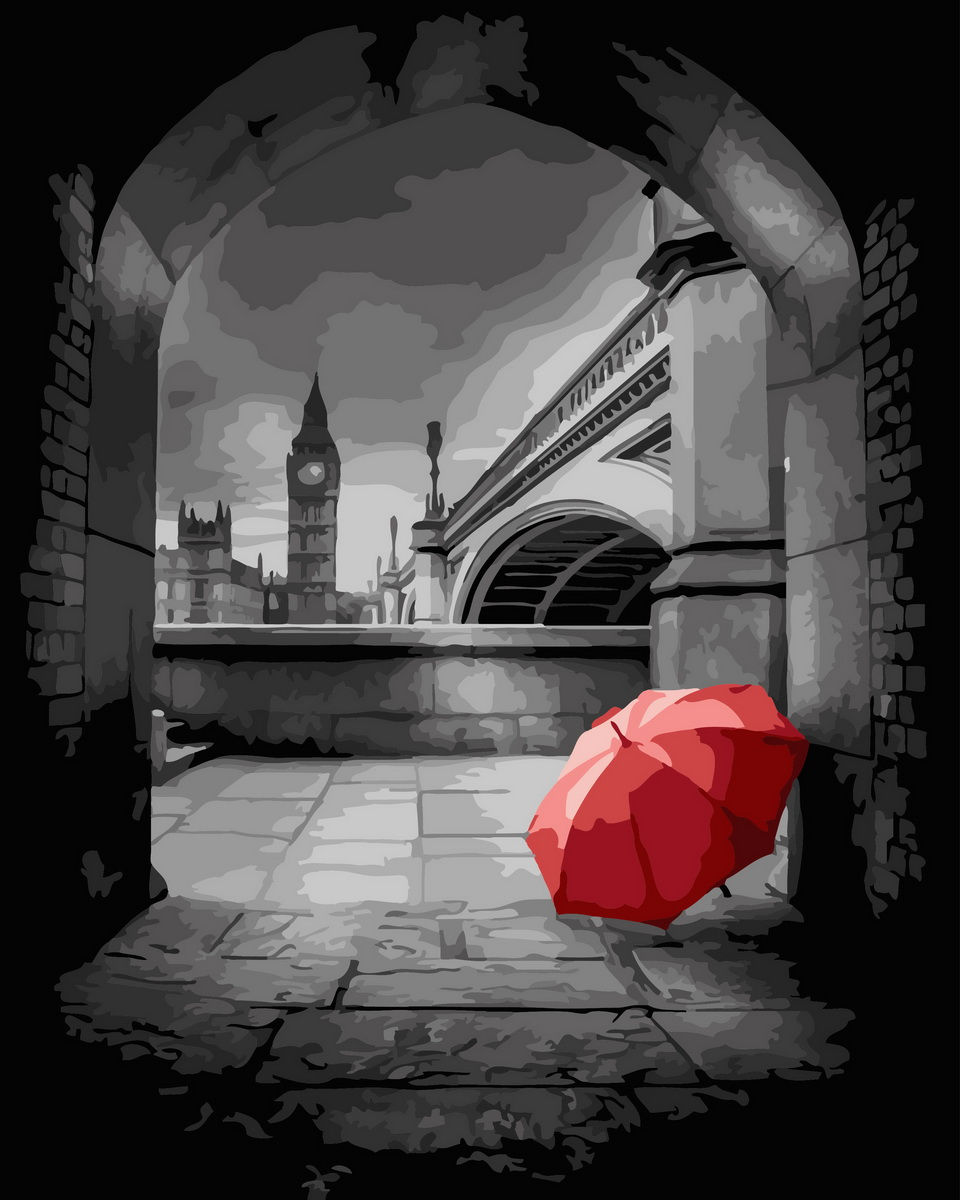 Набор для рисования картины по номерам Красный зонт в арке, арт. BRM32893, 40х50см. ***НАЛИЧИЕ УТОЧНЯЙТЕ***