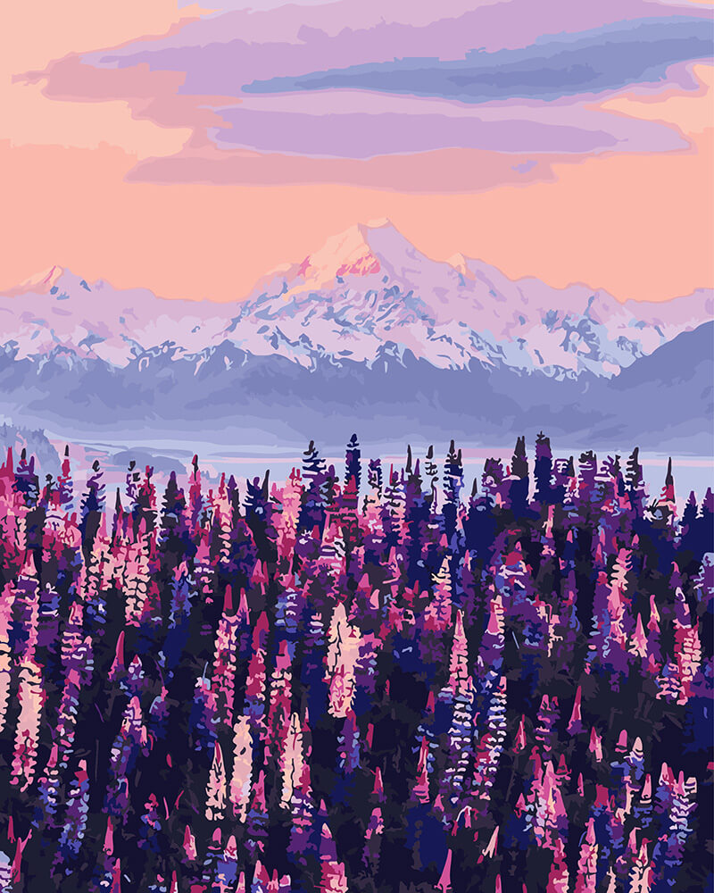 Набор для рисования картины по номерам Лавандовый вид на горы Новой Зеландии, арт. BK-GX27967, 40х50см. ***НАЛИЧИЕ УТОЧНЯЙТЕ***