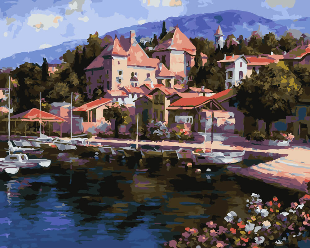 Набор для рисования картины по номерам Лодочная пристань, арт. BK-GX23000, 40х50см. ***НАЛИЧИЕ УТОЧНЯЙТЕ***