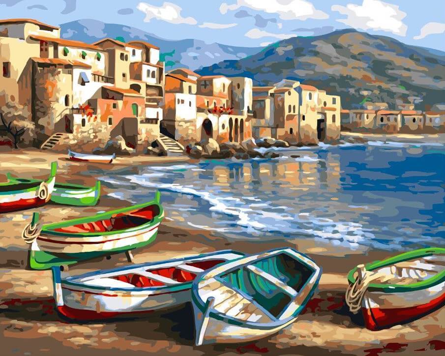 Набор для рисования картины по номерам Лодочная пристань, арт. BK-GX4812, 40х50см. ***НАЛИЧИЕ УТОЧНЯЙТЕ***