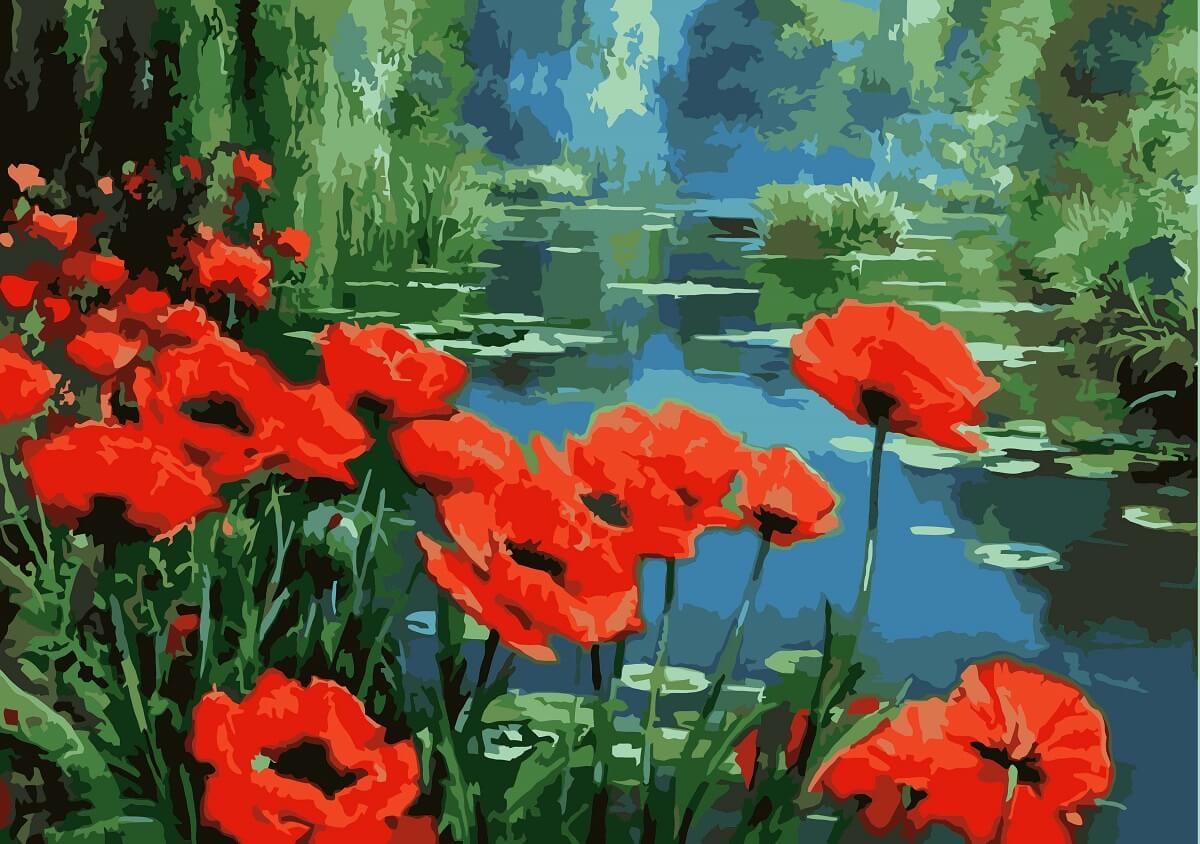 Набор для рисования картины по номерам Маки у пруда, арт. KHO2056, 40х50см. ***НАЛИЧИЕ УТОЧНЯЙТЕ***