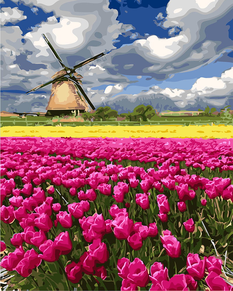Набор для рисования картины по номерам Мельница в поле тюльпанов, арт. BK-GX27313, 40х50см. ***НАЛИЧИЕ УТОЧНЯЙТЕ***