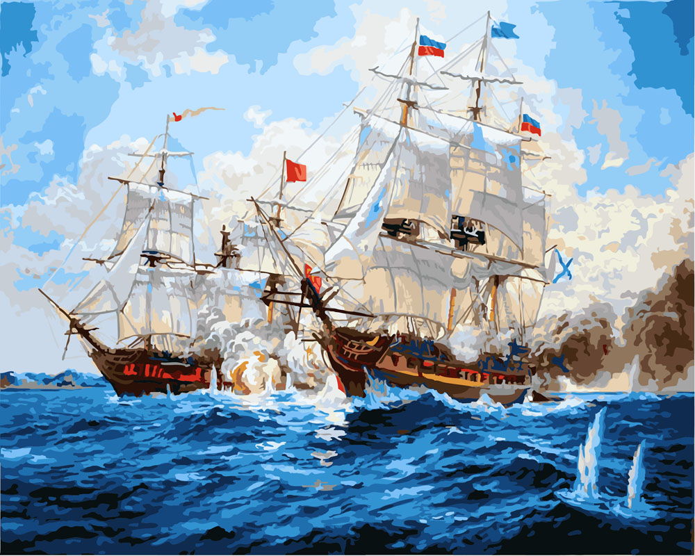 Набор для рисования картины по номерам Морской бой, арт. BK-GX3457, 40х50см. ***НАЛИЧИЕ УТОЧНЯЙТЕ***