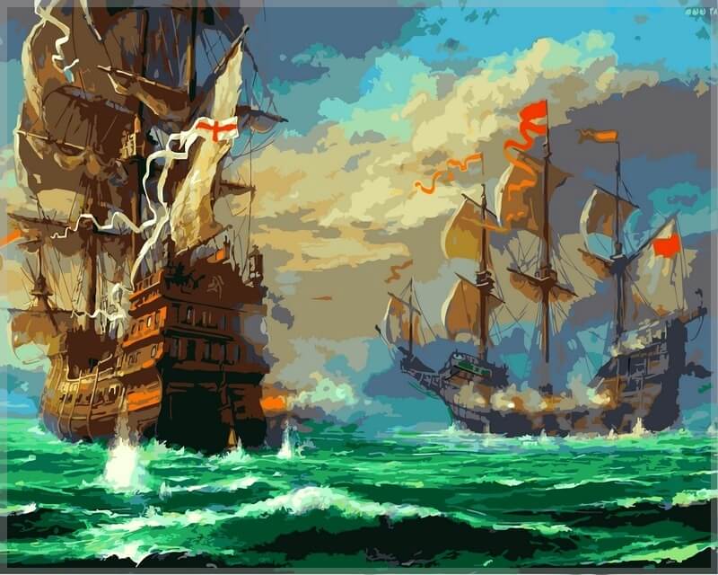 Набор для рисования картины по номерам Морской бой, арт. VP319, 40х50см. ***НАЛИЧИЕ УТОЧНЯЙТЕ***