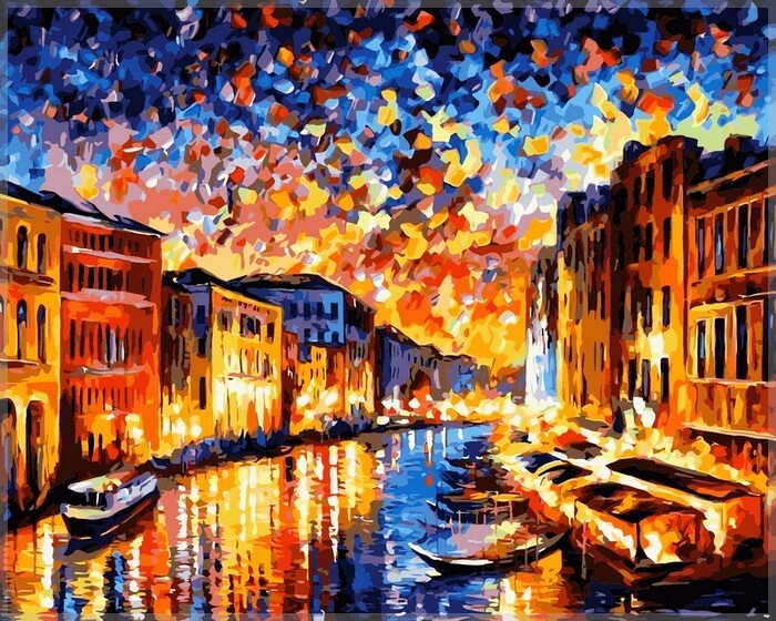 Набор для рисования Ночная Венеция, арт. VP072 (Babylon) содержит: прогрунтованный холст на подрамнике с нанесенной номерной схемой, акриловые краски, кисти, крепеж на стену и инструкцию с фото. В коробке. Размер 40х50см. Худ. Афремов, Леонид