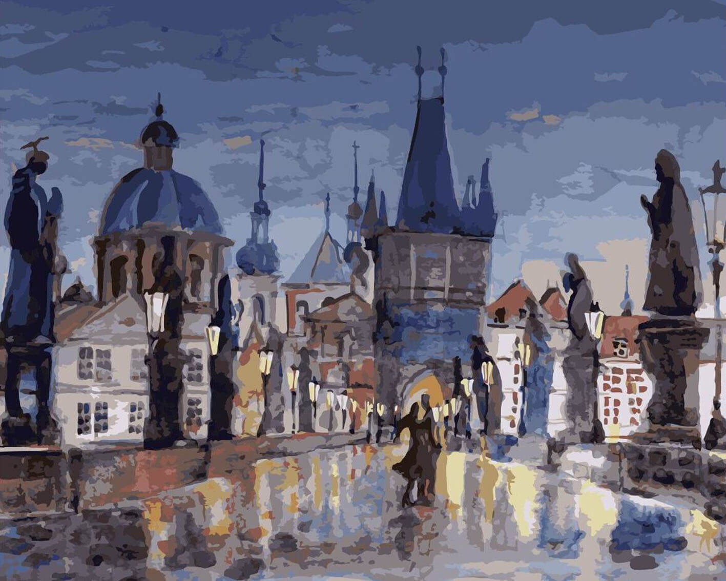 Набор для рисования Ночная Прага. Карлов мост, арт. BK-GX9587 (БК-GX) содержит: прогрунтованный холст на подрамнике с нанесенной номерной схемой, акриловые краски, кисти, крепеж на стену и инструкцию с фото. Размер 40х50см.