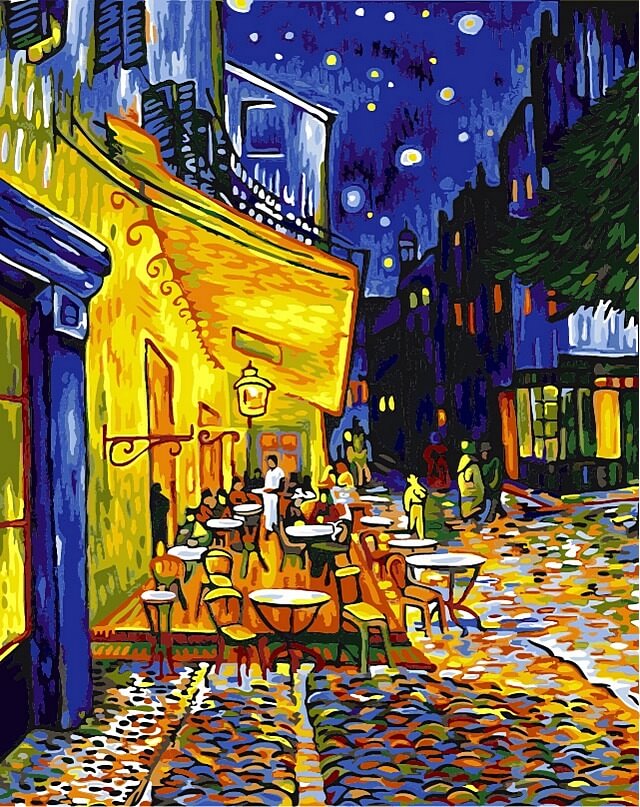 Набор для рисования Ночная терраса кафе, арт. NB504, ТМ Babylon Premium содержит: льняной, слегка окрашенный номерной холст на подрамнике, акриловые краски, нейлоновые кисти, матовый лак, крепеж на стену и инструкцию. Размер 40х50см. Худ-к Ван Гог Винсент