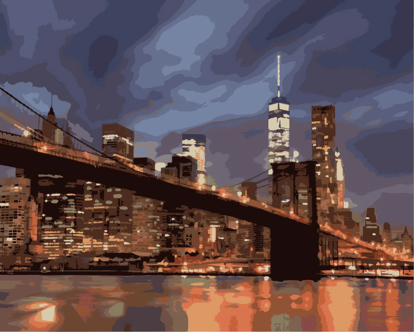 Набор для рисования Ночной Нью-Йорк, арт. KHO2133 (Идейка) содержит: прогрунтованный холст на подрамнике с нанесенной номерной схемой, акриловые краски, кисти, крепеж на стену и инструкцию с фото. Без коробки. Размер 40х50см.