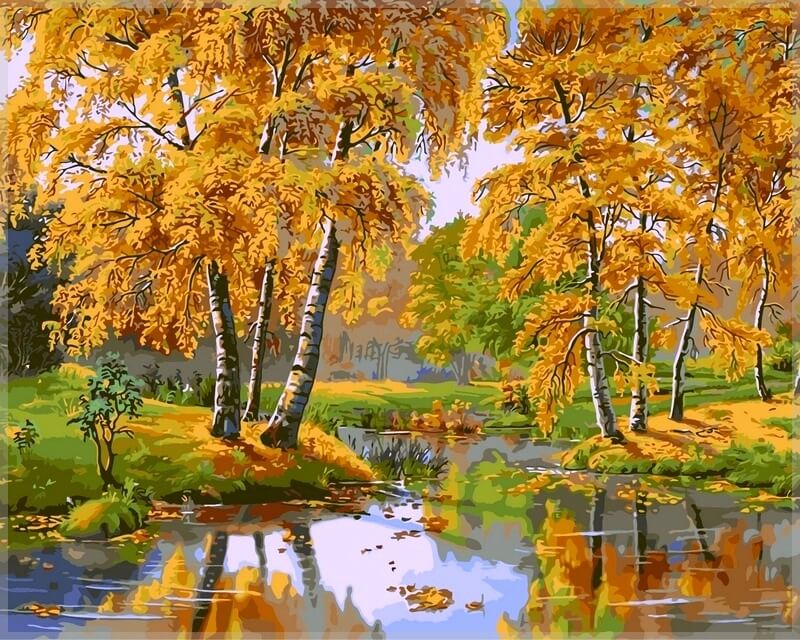 Набор для рисования Осенний день, арт. VPS163 (Babylon) содержит: прогрунтованный холст на подрамнике с нанесенной номерной схемой, акриловые краски, кисти, крепеж на стену и инструкцию с фото. В коробке. Размер 50х65см. Худ-к Цыганов Виктор