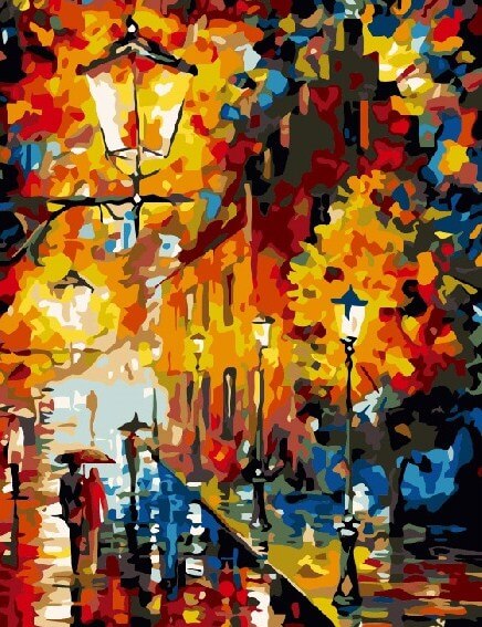 Набор для рисования Осенняя прогулка, арт. BK-GX6362 (BrushMe) содержит: прогрунтованный холст на подрамнике с нанесенной номерной схемой, акриловые краски, кисти, крепеж на стену и инструкцию с фото. Размер 40х50см.