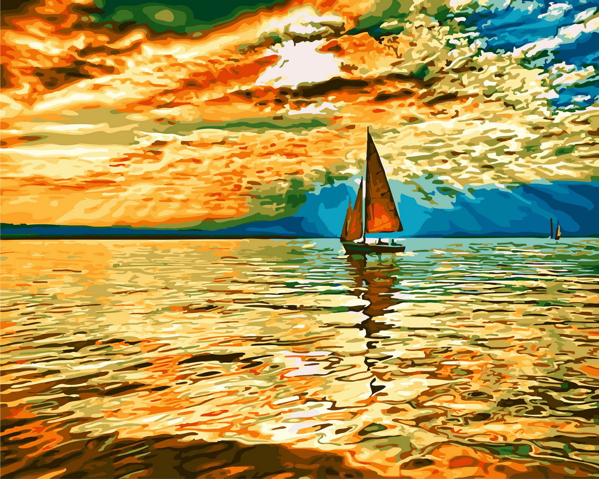 Набор для рисования Парусник на рассвете, арт. BRM30290 (Rainbow Art) содержит: прогрунтованный холст на подрамнике с нанесенной номерной схемой, акриловые краски, кисти, крепеж на стену и инструкцию с фото. Размер 40х50см.