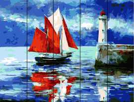 Набор для рисования Парусник у маяка, арт. RA-AS0152 (Rainbow Art) содержит: прогрунтованный холст на подрамнике с нанесенной номерной схемой, акриловые краски, кисти, крепеж на стену и инструкцию с фото. Размер 40х50см.