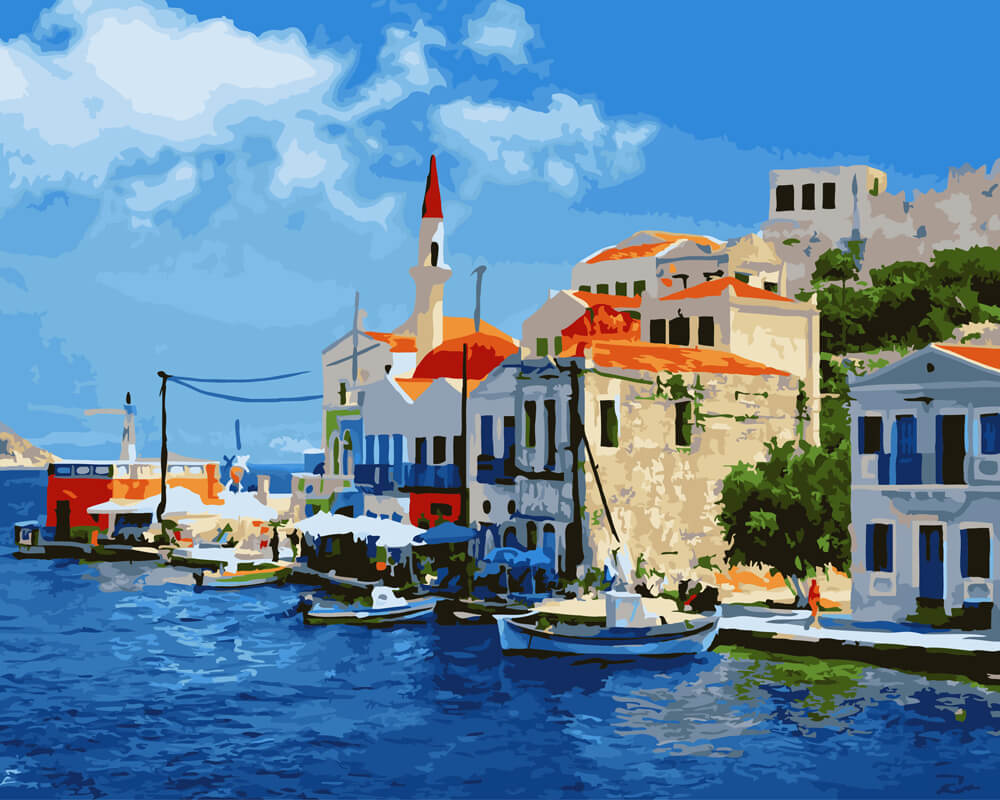 Набор для рисования картины по номерам Побережье Греции, арт. BK-GX22480, 40х50см. ***НАЛИЧИЕ УТОЧНЯЙТЕ***
