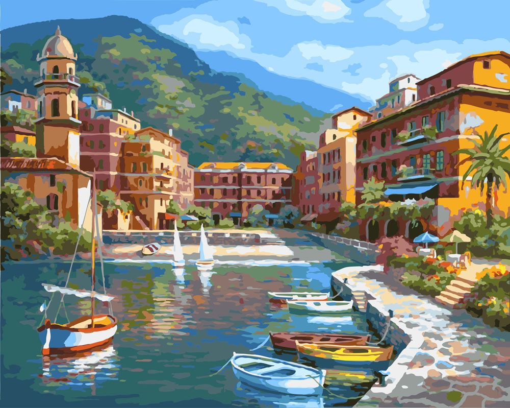 Набор для рисования картины по номерам Причал в Портофино, арт. BK-GX9508, 40х50см. ***НАЛИЧИЕ УТОЧНЯЙТЕ***