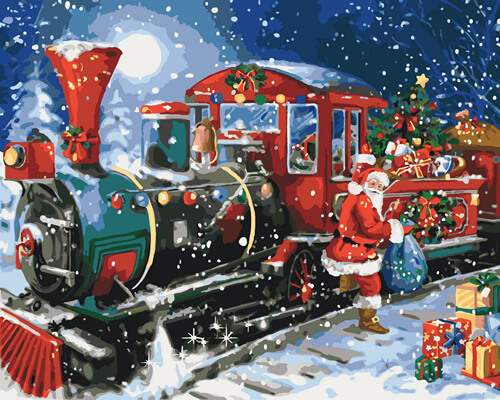 Набор для рисования картины по номерам Рождественский поезд, арт. KHO4522, 40х50см. ***НАЛИЧИЕ УТОЧНЯЙТЕ***