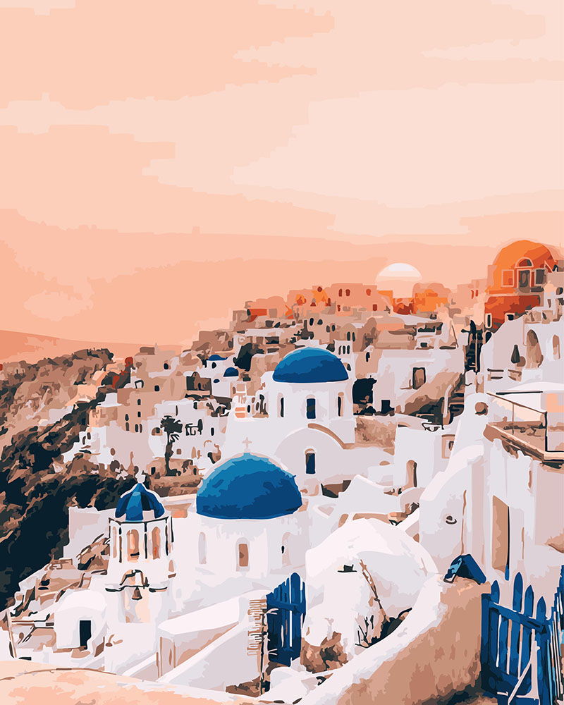 Набор для рисования Розовый закат Санторини, арт. BRM26288 (Brushme) содержит: прогрунтованный холст на подрамнике с нанесенной номерной схемой, акриловые краски, кисти, крепеж на стену и инструкцию с фото. Размер 40х50см.