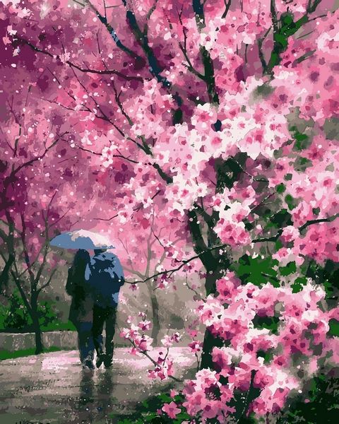 Набор для рисования картины по номерам Сакура под дождем, арт. VP1170, 40х50см. ***НАЛИЧИЕ УТОЧНЯЙТЕ***