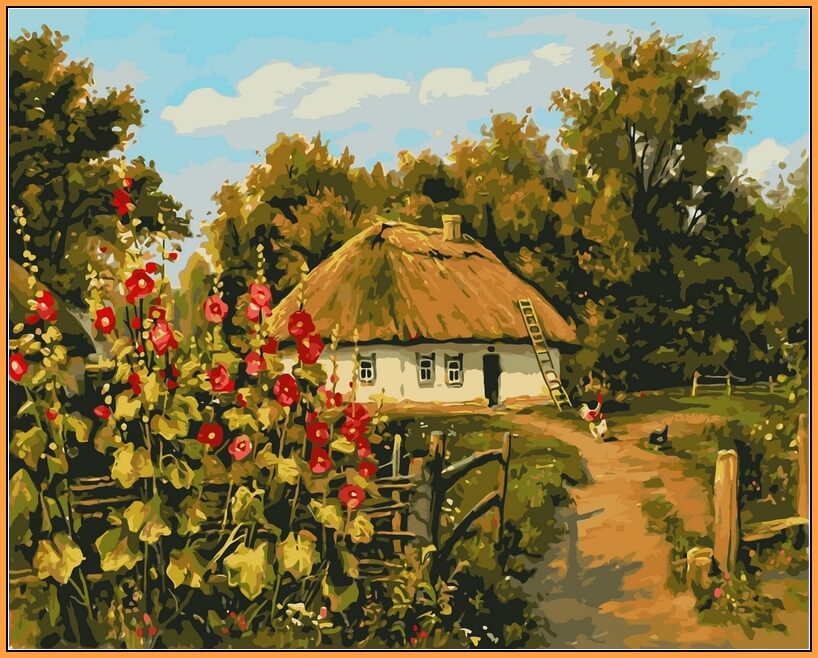 Набор для рисования картины по номерам Сельская хатка (в раме), арт. NB354R, 40х50см. ***НАЛИЧИЕ УТОЧНЯЙТЕ***