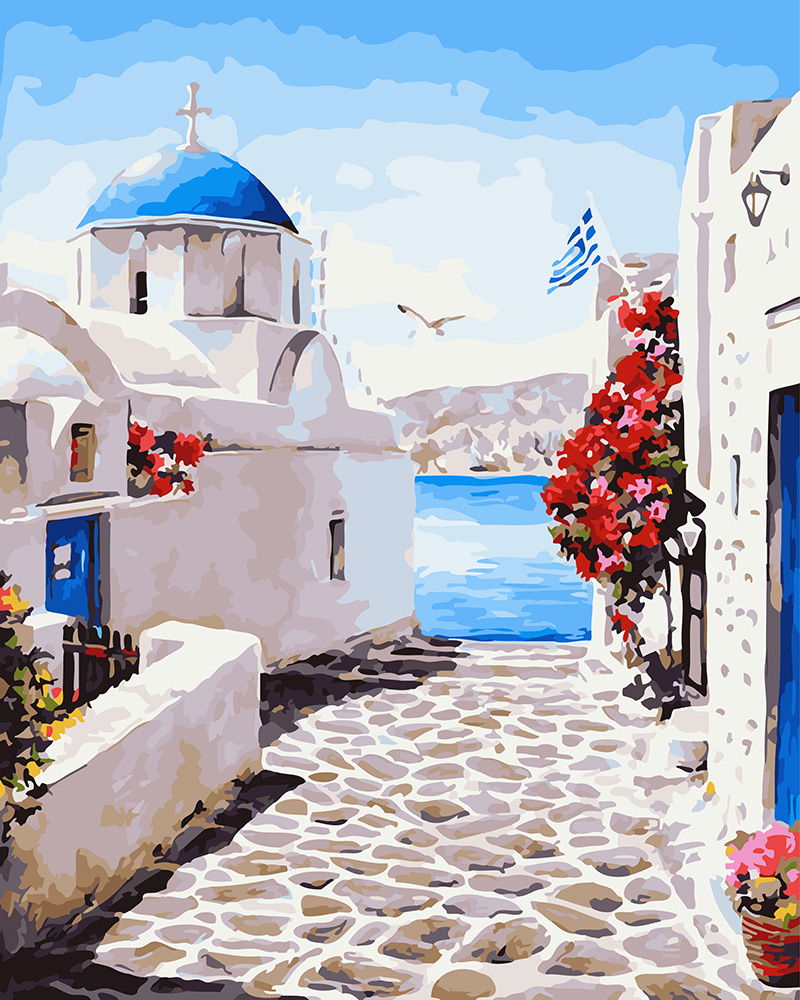 Набор для рисования картины по номерам Сказочные улочки Санторини, арт. BK-GX27704, 40х50см. ***НАЛИЧИЕ УТОЧНЯЙТЕ***
