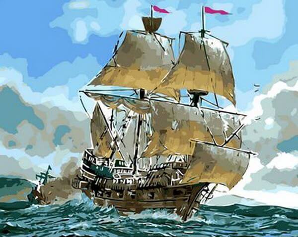 Набор для рисования картины по номерам Сражение кораблей, арт. MR-Q553, 40х50см. ***НАЛИЧИЕ УТОЧНЯЙТЕ***