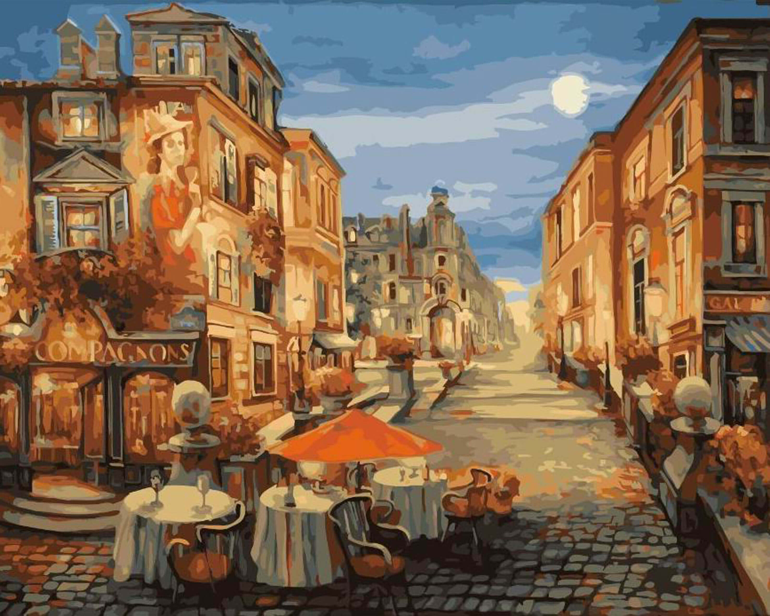 Набор для рисования Старинные улочки, арт. BK-GX21436 (ТМ БК-GX) содержит: прогрунтованный холст на подрамнике с нанесенной номерной схемой, акриловые краски, кисти, крепеж на стену и инструкцию с фото. Без коробки. Размер 40х50см.