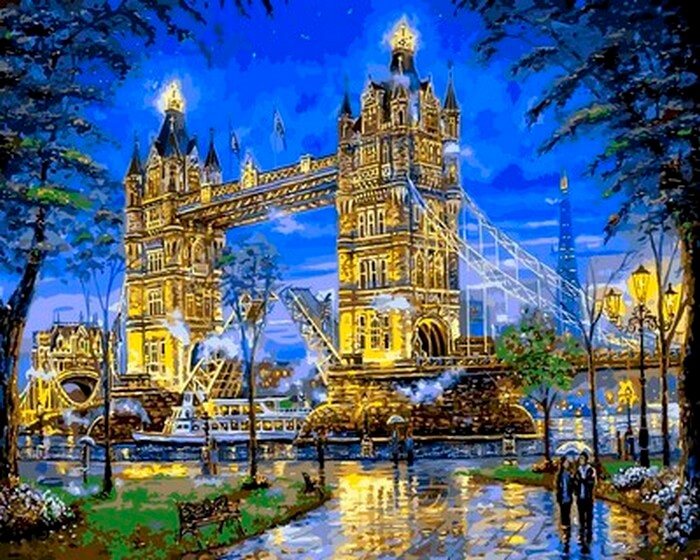 Набор для рисования Тауэрский мост, арт. MR-Q2171 (Mariposa) содержит: прогрунтованный холст на подрамнике с нанесенной номерной схемой, акриловые краски, кисти, крепеж на стену и инструкцию с фото. Размер 40х50см.