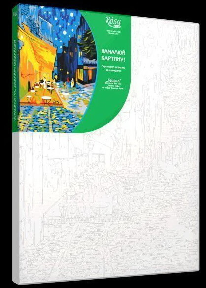 Набор для рисования Терасса (без коробки), арт. RS-N00013084 (РОСА) содержит: прогрунтованный холст на подрамнике с нанесенной номерной схемой, акриловые краски, кисти, крепеж на стену и инструкцию с фото. Размер 35х45см.