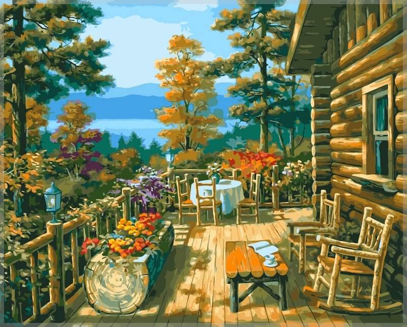 Набор для рисования картины по номерам Терраса лесного домика, арт. VP023, 40х50см. ***НАЛИЧИЕ УТОЧНЯЙТЕ***