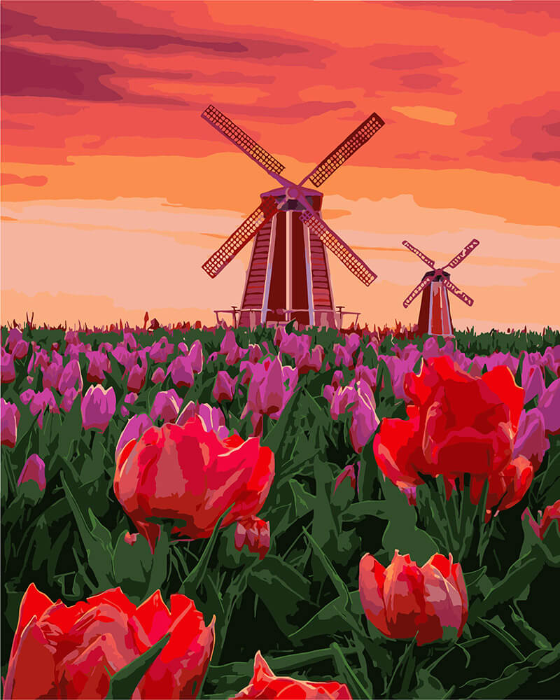 Набор для рисования Тюльпаны на закате, арт. KH2275 (Идейка) содержит: прогрунтованный холст на подрамнике с нанесенной номерной схемой, акриловые краски, кисти, крепеж на стену и инструкцию с фото. Размер 40х50см.