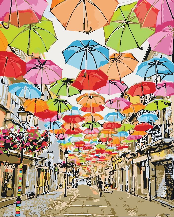 Набор для рисования картины по номерам Улица парящих зонтиков, арт. KHO3508, 40х50см. ***НАЛИЧИЕ УТОЧНЯЙТЕ***