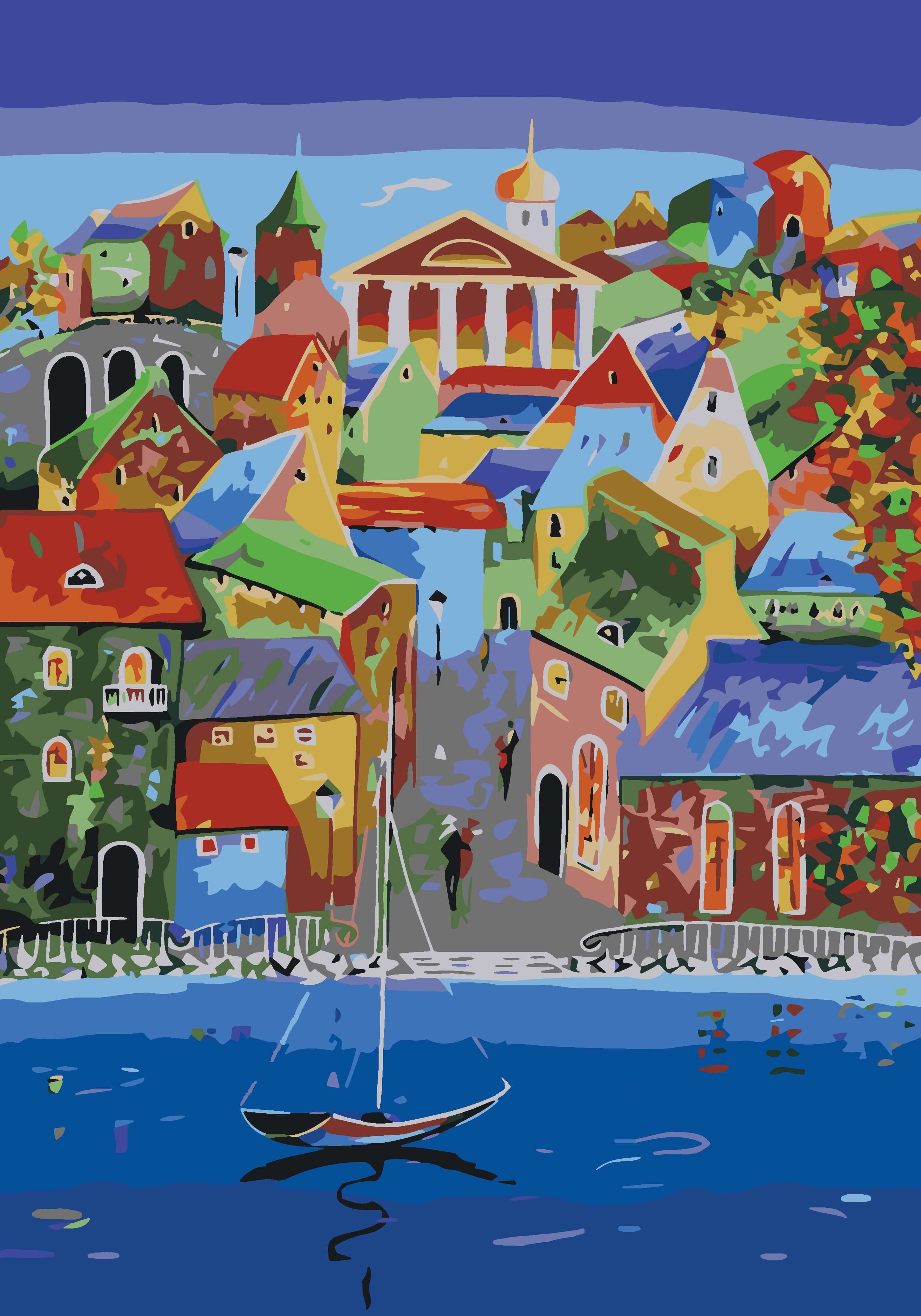 Набор для рисования картины по номерам Яркий городок, арт. KHO3505, 35х50см. ***НАЛИЧИЕ УТОЧНЯЙТЕ***