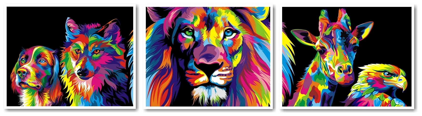 Набор для рисования картины по номерам Радужные животные, арт. VPT022, триптих 40х150см. ***НАЛИЧИЕ УТОЧНЯЙТЕ***