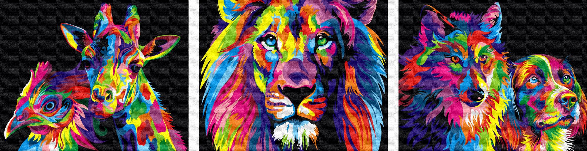 Набор для рисования картины по номерам Радужные жывотные, арт. PX5099, Триптих 50х120см. ***НАЛИЧИЕ УТОЧНЯЙТЕ***