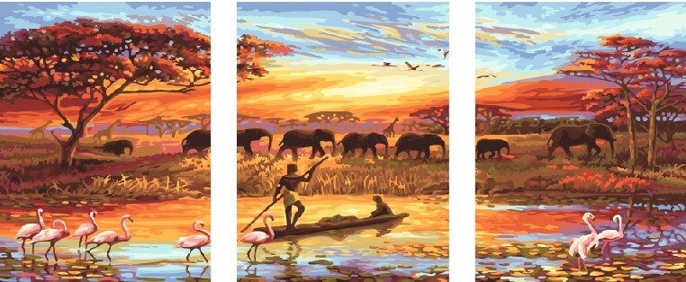 Набор для рисования картины по номерам Триптих Закат над Нилом, арт. BK-PX5166, Триптих 50х120см. ***НАЛИЧИЕ УТОЧНЯЙТЕ***