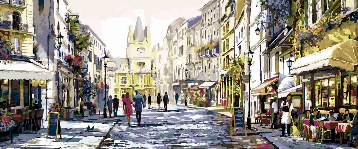 Набор для рисования Триптих. Летний вечер в Париже, арт. VPT026, ТМ Babylon содержит: прогрунтованный холст на подрамнике с нанесенной номерной схемой, акриловые краски, кисти, крепеж на стену и инструкцию с фото. Триптих 50х150см. Худ-к Ричард Макнейл