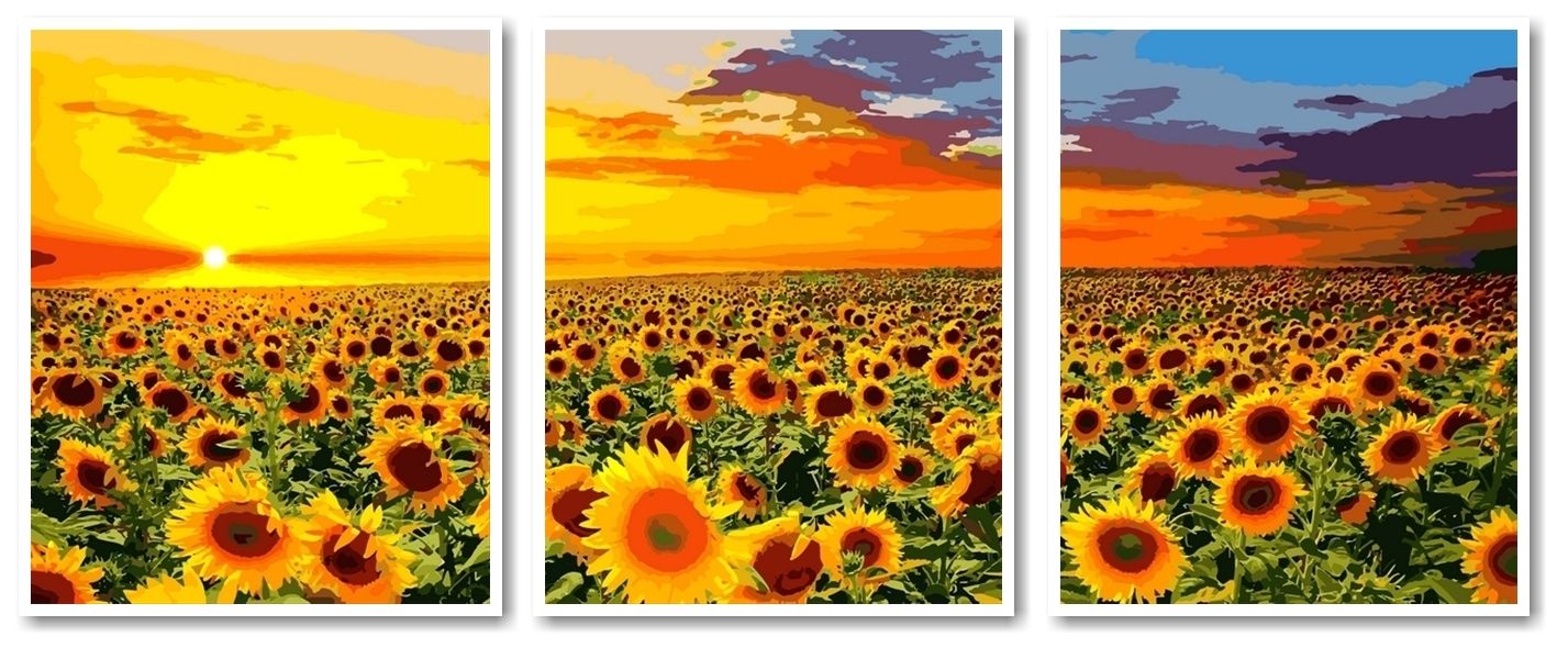 Набор для рисования картины по номерам Триптих Поле подсолнухов, арт. VPT041, Триптих 50х120см. ***НАЛИЧИЕ УТОЧНЯЙТЕ***