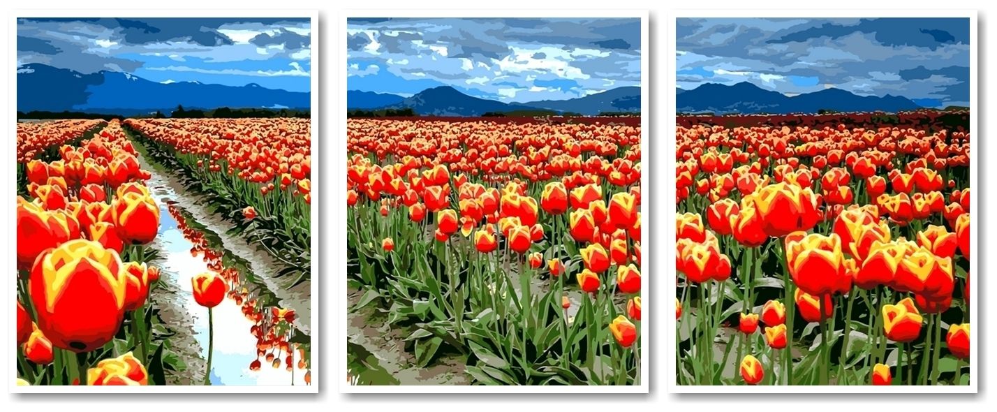 Набор для рисования картины по номерам Триптих Поле тюльпанов, арт. VPT042, Триптих 50х120см. ***НАЛИЧИЕ УТОЧНЯЙТЕ***