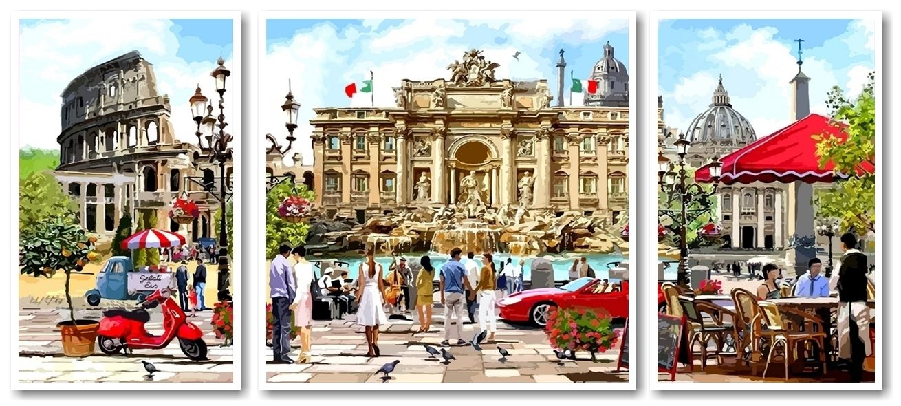 Набор для рисования картины по номерам Триптих Римские каникулы, арт. VPT044, Триптих 150х50см, 2 по 30х50см. ***НАЛИЧИЕ УТОЧНЯЙТЕ***