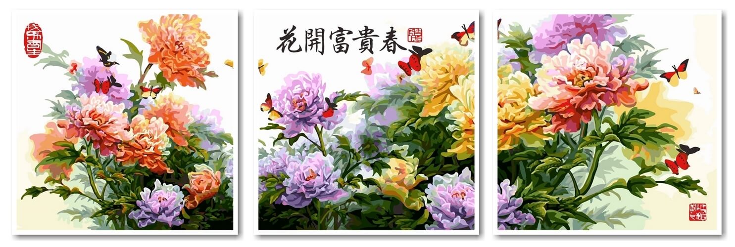 Набор для рисования картины по номерам Японские хризантемы, арт. VPT023, триптих 50х150см. ***НАЛИЧИЕ УТОЧНЯЙТЕ***
