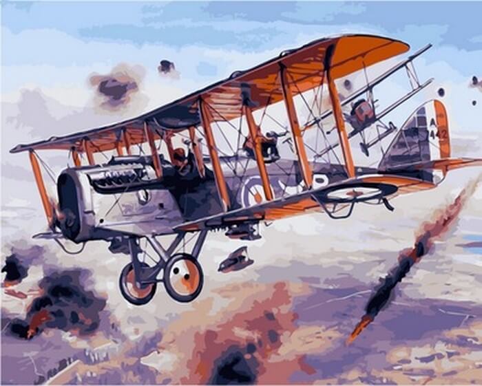 Набор для рисования Воздушный бой, арт. VP829, ТМ Babylon содержит: прогрунтованный холст на подрамнике с нанесенной номерной схемой, акриловые краски, кисти, крепеж на стену и инструкцию с фото. В коробке. Размер 40х50см. Худ-к Рой Кросс