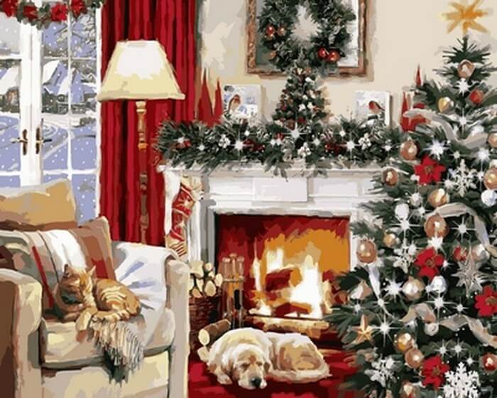 Набор для рисования картины по номерам Рождественский вечер у камина, арт. VP787, 40х50см, Babylon. ***НАЛИЧИЕ УТОЧНЯЙТЕ***