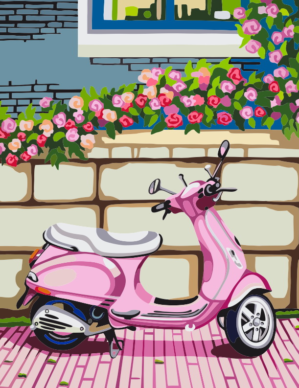Набор для рисования картины по номерам Розовый мопед, арт. RS-N0001380, 35х45см. ***НАЛИЧИЕ УТОЧНЯЙТЕ***