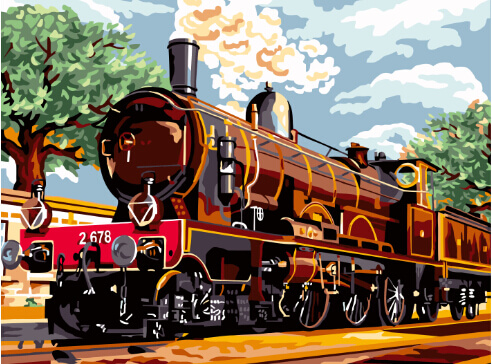 Набор для рисования картины по номерам Старинный поезд, арт. BK-EX6113, 30х40см. ***НАЛИЧИЕ УТОЧНЯЙТЕ***