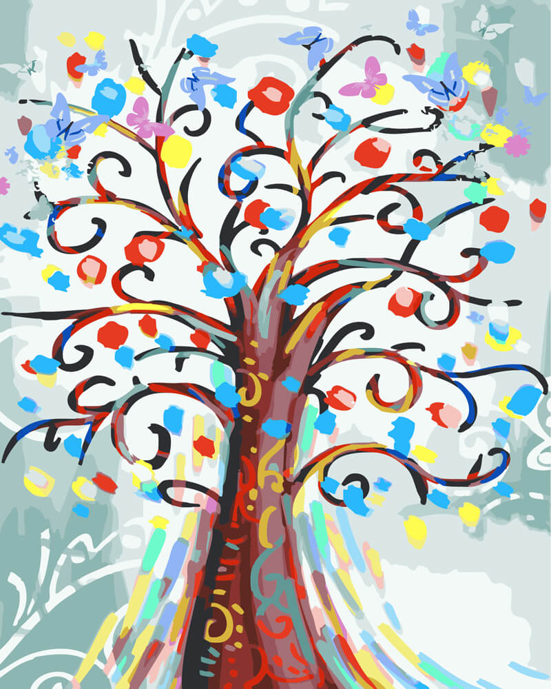 Набор для рисования Цветущее дерево, арт. BK-GT61050 (Rainbow Art) содержит: прогрунтованный холст на подрамнике с нанесенной номерной схемой, акриловые краски, кисти, крепеж на стену и инструкцию с фото. Размер 40х50см.