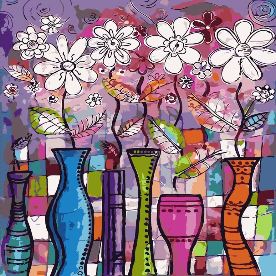 Набор для рисования картины по номерам Яркие вазочки, арт. AS0322, 40х40см. ***НАЛИЧИЕ УТОЧНЯЙТЕ***