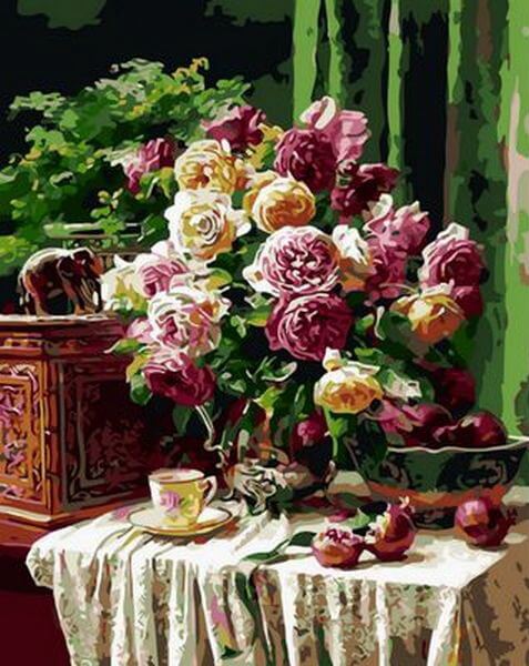 Набор для рисования картины по номерам Бордовые розы и гранаты, арт. MR-Q1358, 40х50см. ***НАЛИЧИЕ УТОЧНЯЙТЕ***
