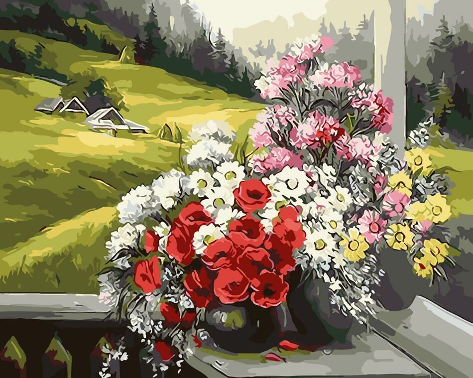 Набор для рисования картины по номерам Букеты на окне, арт. AS0013, 40х50см. ***НАЛИЧИЕ УТОЧНЯЙТЕ***
