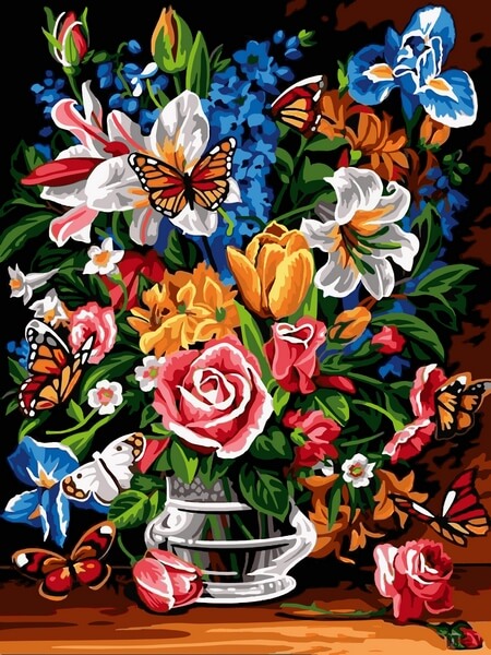Набор для рисования картины по номерам Букет и бабочки, арт. VK248, 30х40см. ***НАЛИЧИЕ УТОЧНЯЙТЕ***